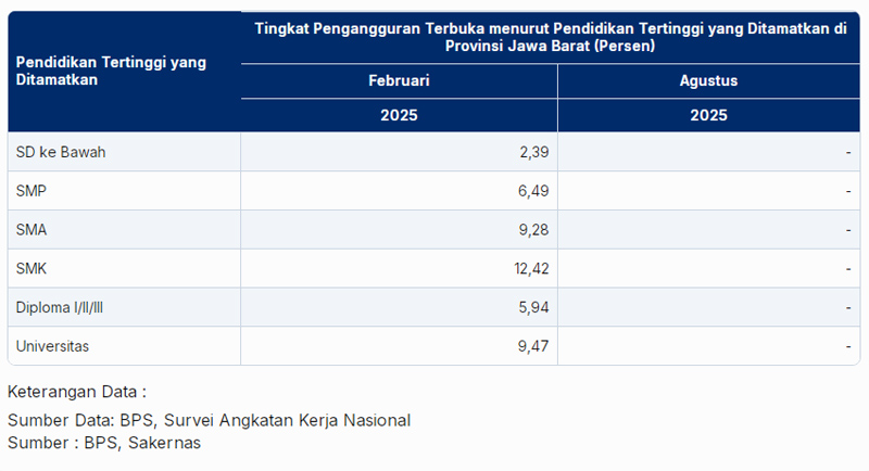 | Tingkat Pengangguran Terbuka menurut Pendidikan Tertinggi yang Ditamatkan di Provinsi Jawa Barat (Persen) | ||