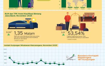 Tingkat Penghunian Kamar (TPK) Hotel Gabungan Bintang dan Nonbintang di Jawa Barat pada Juli 2025 mencapai 38,80 persen, naik 1,30 poin dibandingkan TPK Juni 2025 yang mencapai 37,50 persen.